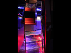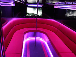 This Fire Truck is a rocking Limo style on the inside with red leather seats, great lighting, and sounds, dancing pole and toilet on board, siren’s and flashing lights – what a unique experience.